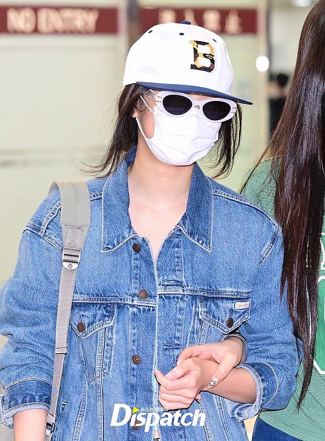 해린은 모자와 마스크, 선글라스로 완벽히 얼굴을 감쌌다. 데님 재킷으로 연출한 산뜻한 공항패션이 눈길을 끌었다.