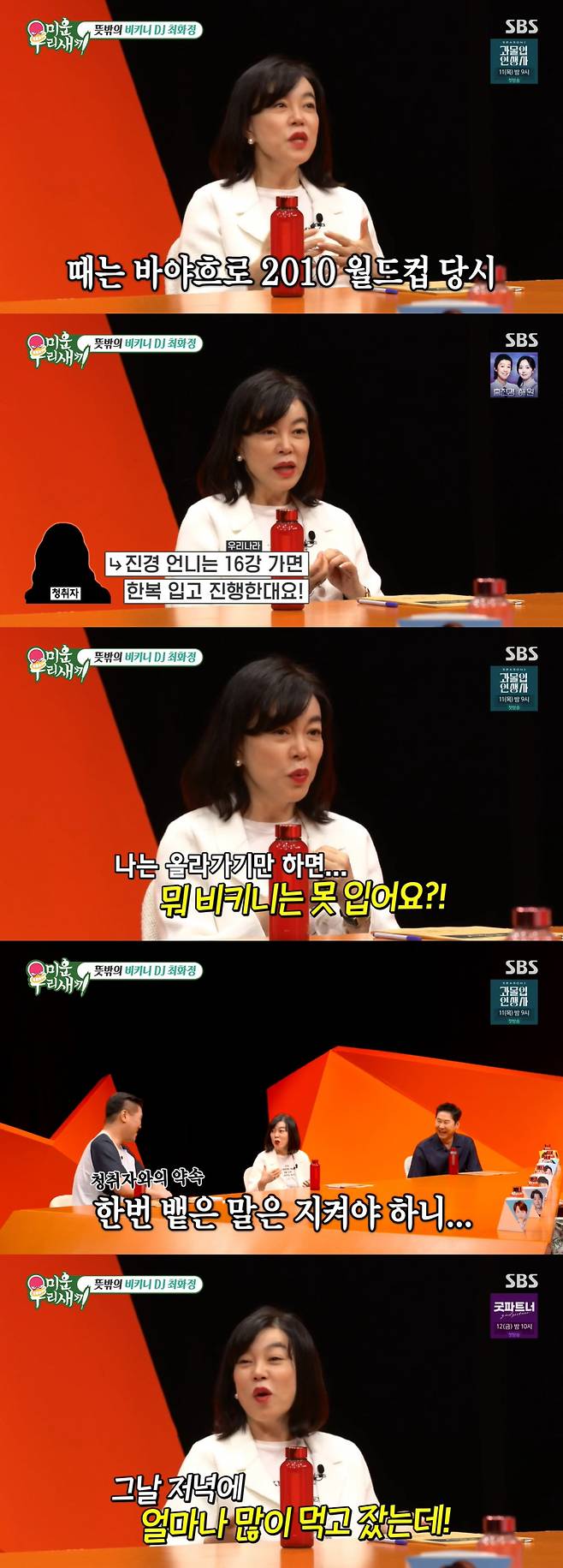 '미우새' 최화정 "비키니 입고 라디오 진행, 16강 공약...손이 덜덜 떨리더라"