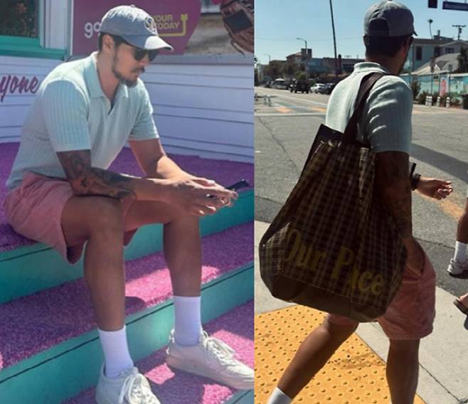캡모자에 회색 티, 핑크색 반바지를 입은 파스텔톤의 캐주얼한 룩을 선보인 소지섭은 힙한 매력을 발산해 시선을 모은다.