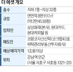 더 에셋 인수전은 다수의 운용사들이 몰리며 흥행에 성공했다는 평가가 나온다. 숏리스트에 들어간 이 운용사들은 평(3.3㎡)당 4300만원 이상을 써낸 것으로 알려졌다. 인수 금액으로 모두 1조원을 넘는 금액을 써낸 셈이다. 더 에셋 타워는 강남업무권역(GBD) 랜드마크로 꼽히는 빌딩이다. 지하 7층~지상 32층, 연면적 8만1117㎡(약 2만4538평) 규모에 달했다. 서초동 삼성타운 A~C동 가운데 B동에 해당한다. 코람코자산신탁은 ‘코크렙43호 위탁관리부동산투자회사(코크렙 43호 리츠)’을 통해 더 에셋을 운용 중이다. 2018년 7484억원에 이 자산을 매입해 약 6년여 만에 자금 회수에 나섰다.