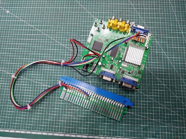 검떠 : 주로 국내에서 이제까지 많이 사용되었던 영상 변환 컨버터는 노란색 컴포넌트 단자가 보이는 'GBS8200' 라는 제품입니다. 이 제품은 15k 뿐만 아니라 CGA, 컴포넌트 신호도 받아서 31k 신호로 변환해 줄 수 있죠. 국내 오락실에 LCD 캐비넷을 놓을때 주로 사용되는 컨버터입니다.