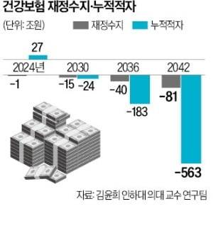 의료비 지출을 지금처럼 유지하면 2042년 건강보험 누적 적자가 563조원에 달할 것이라는 전망이 나왔다. 저출산·고령화로 보험료를 낼 사람은 줄어드는데 의료비 지출은 ‘브레이크’ 없이 폭증하고 있어서다.