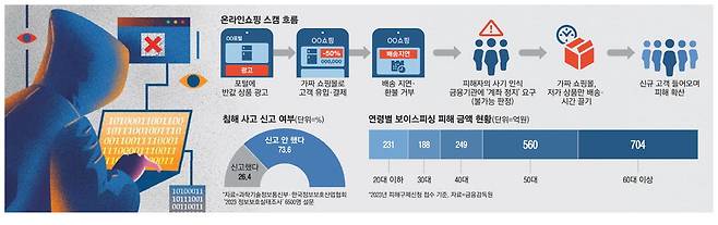 중소 온라인 쇼핑몰의 광고다. 이 쇼핑몰에서 물품을 구매한 수백 명의 사용자 대다수가 피해를 입었다. 온라인 쇼핑몰 판매자가 배송을 미루고 있는 데다, 일부에게만 환불을 해주면서 피해가 커졌다. 전형적인 온라인 사기인 '스캠(Scam)'이다. 정부가 '보이스피싱 대응·불법 사금융' 대책을 8일 내놓았지만 사각지대는 여전히 넓다. 온라인 사기꾼은 전화·문자를 넘어선 지 오래다. 인터넷과 사회관계망서비스(SNS)에서 이뤄지는 쇼핑몰 스캠, 로맨스 스캠, 투자 스캠이 대표적이다.