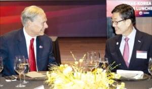 한국무역협회가 8일 서울 장충동 신라호텔에서 그레그 애벗 미국 텍사스주지사(왼쪽)를 초청해 무역업계 간담회를 열었다.
