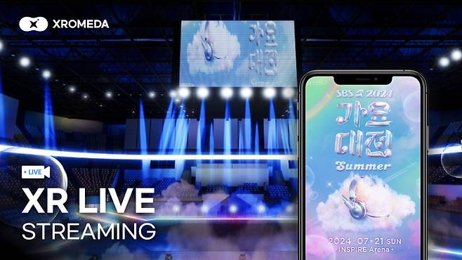 엑스로메다는 이번 SBS 가요대전의 공인 중계 플랫폼으로 선정됐으며 최초로 XR 콘텐츠를 활용해 가요대전 현장을 라이브 스트리밍한다. 엑스로메다에 마련되는 XR 스테이지는 현실 속 공연장 컨셉으로 구현되며 시청자들은 디지털 환경에서도 스테이지에 참여하는 것과 같은 몰입감을 경험할 수 있다.