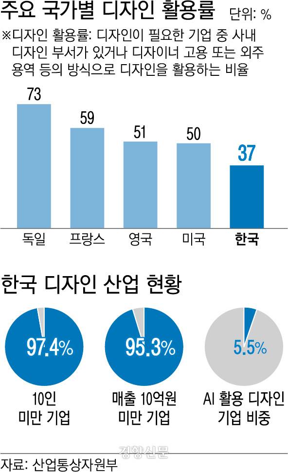 한국은 디자인 산업 기반 수준이 세계 7위로 알려졌지만, 디자인 활용률은 37.3%에 불과하다. 디자인 활용률은 디자인이 필요한 기업 중 사내 디자인 부서가 있거나 디자이너 고용 또는 외주 용역 등의 방식으로 디자인을 활용하는 비율을 말한다.