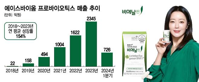 비에날씬을 중심으로 한 에이스바이옴 프로바이오틱스 매출액은 2018년 22억원에서 지난해 2345억원으로 연평균 154%에 달하는 성장률을 이어왔다. 올 1분기 726억원의 매출액으로 또 한번의 실적 경신을 예고 중이다. 바이오니아 전체 매출에서 차지하는 비중 역시 2020년 23.9%에서 1분기 92%까지 커지며 전체 실적을 견인 중이다.
