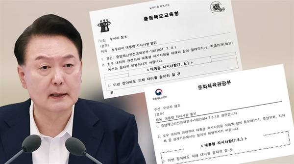 한편, 충북도교육청은 9일 소속 공무원에게 윤석열 대통령의 '호우대비 지시사항'이 담긴 짧은 공문을 배포했다. 충북교육청 외에도 과학기술정보통신부, 문화체육관광부와 일선 지자체에도 동일한 내용의 공문이 전달됐다.