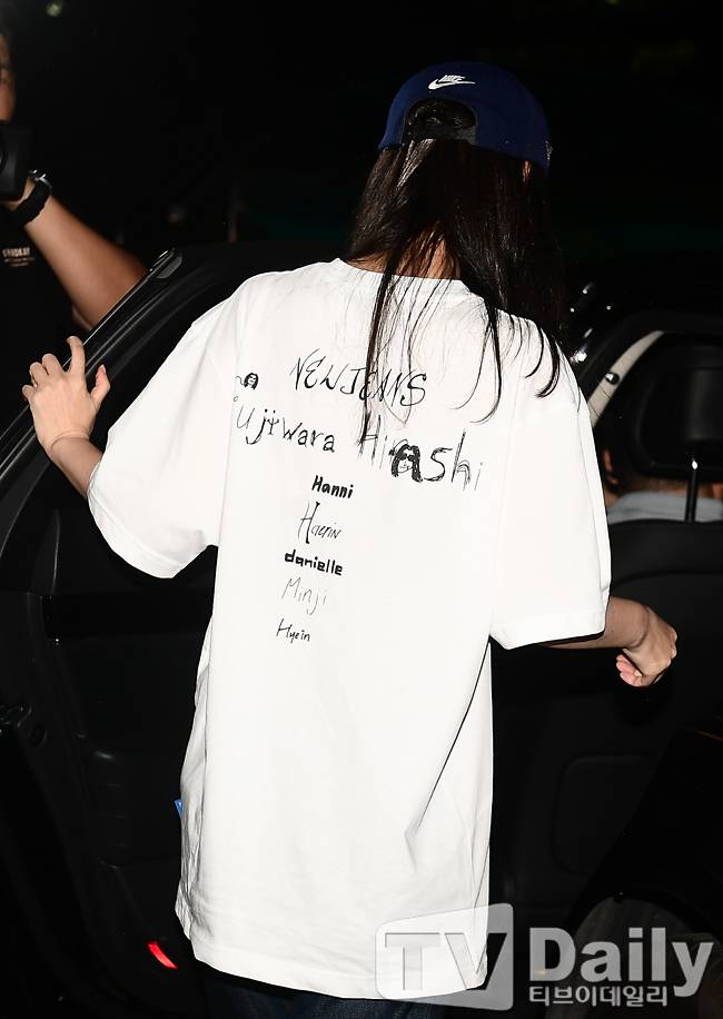이날 민 대표가 입은 반소매 티셔츠는 소속 그룹 뉴진스와 일본 스트리트 패션 대부 히로시 후지와라가 지난 5월 출시한 콜라보 제품이다. 티셔츠 앞면에는 뉴진스 로고 'NJ'가 새겨져 있고, 뒷면에는 멤버들의 이름이 적혀 있다. 해당 제품의 정가는 5만 5000원으로 현재 품절된 상태이며, 한정판 개인 거래 플랫폼인 '크림'에서 9일 기준 11만원에 판매 중이다.