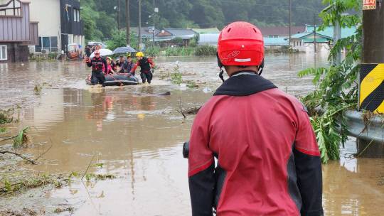 [포토] "사람 살려!" 물에 잠긴 마을…소방당국 긴급 출동