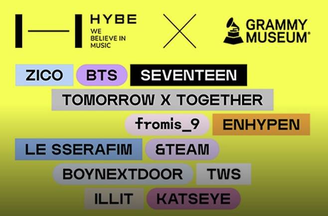 美 로스앤젤레스 그래미 뮤지엄은 10일(한국시간) 홈페이지를 통해 '하이브: 위 빌리브 인 뮤직'(HYBE: We Believe In Music)을 안내했다.