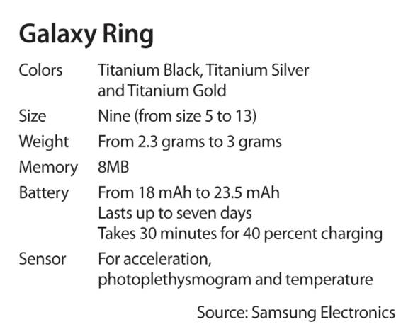 Samsung Electronics' Galaxy Ring and other new wearables unveiled in Paris on Wednesday aim to impersonate a personal health coach through the power of AI and an array of advanced sensors.