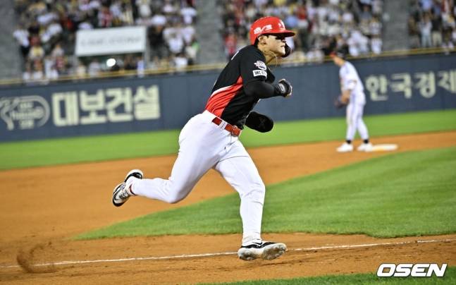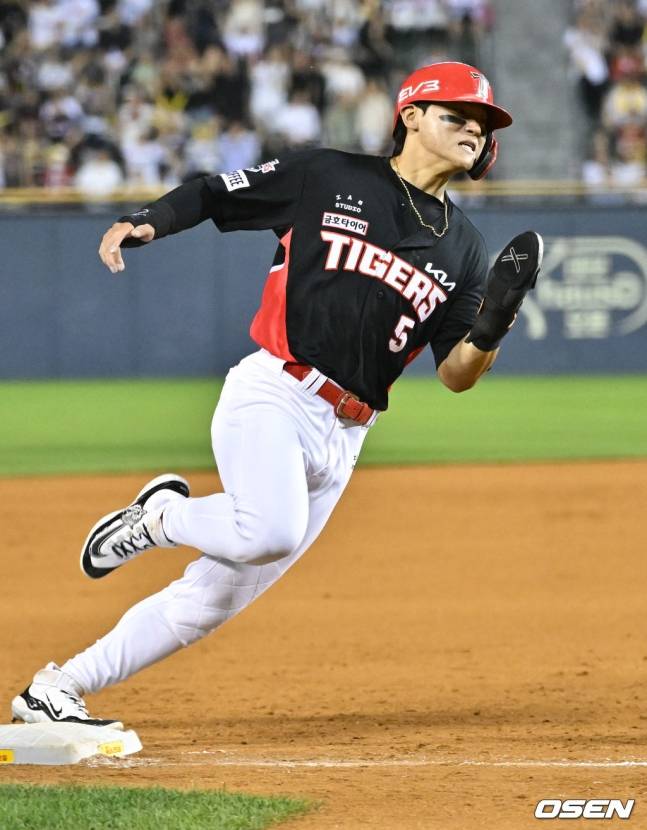 맞는 순간 이미 스타트를 끊은 김도영은 단숨에 2루와 3루를 지나 홈까지 내달렸다.