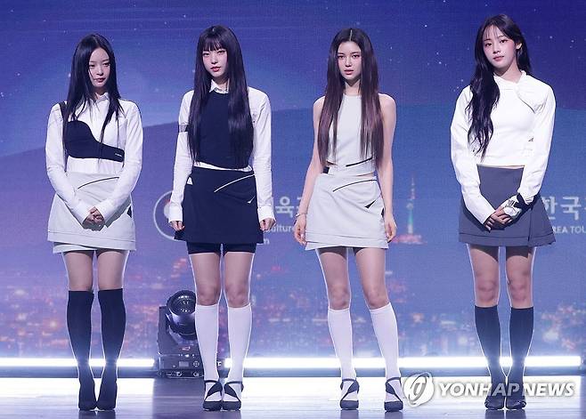 (서울=연합뉴스) 강민지 기자 = 그룹 뉴진스 멤버들이 11일 오전 서울 용산구 그랜드하얏트 호텔에서 열린 2024 한국 관광 명예 홍보대사 위촉식에서 포즈를 취하고 있다.