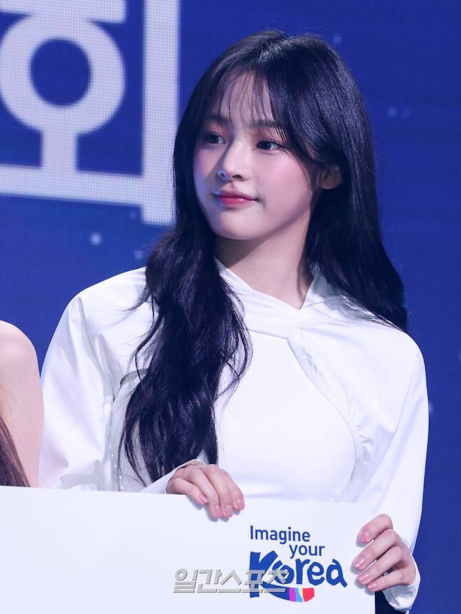 그룹 뉴진스 민지가 11일 오전 서울 용산구 그랜드 하얏트 서울에서 열린 2024 한국관광 명예홍보대사 위촉식에 참석해 기념 촬영을 하고 있다.