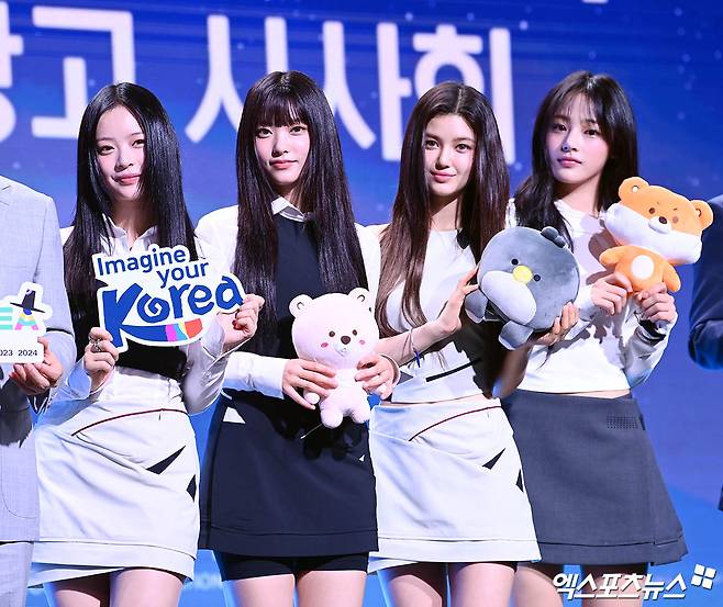 이날 행사에 참석한 그룹 뉴진스(NewJeans)가 포토타임을 갖고 있다.