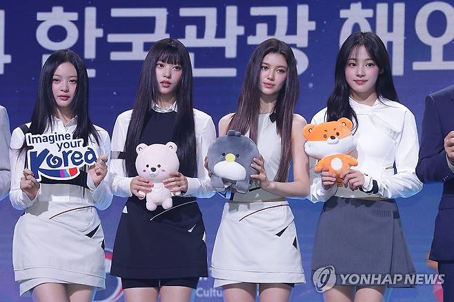 한국관광 명예 홍보대사 위촉식서 기념 촬영하는 뉴진스