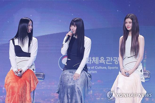 (서울=연합뉴스) 강민지 기자 = 그룹 뉴진스의 해린이 11일 오전 서울 용산구 그랜드하얏트호텔에서 열린 '2024 한국관광 명예홍보대사 위촉식'에서 위촉 소감을 말하고 있다. 2024.7.11