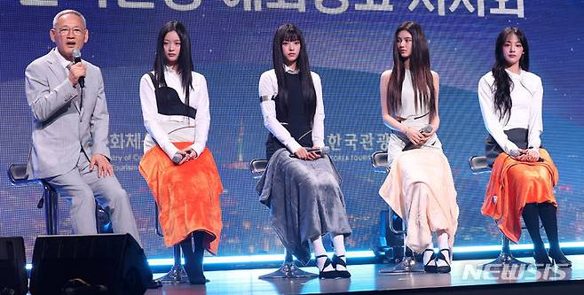 인사말하는 유인촌 장관과 뉴진스 멤버들