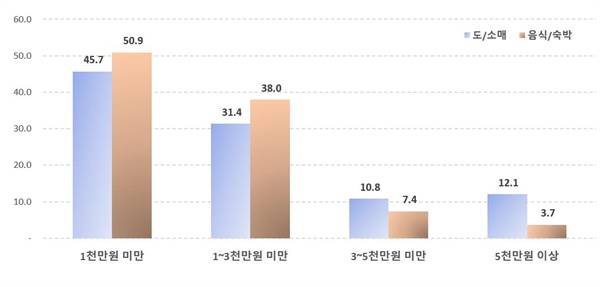 | ▲ 영업이익 규모별 소상공인 사업체 비율 소상공인 실태조사 (2022, 통계청) |