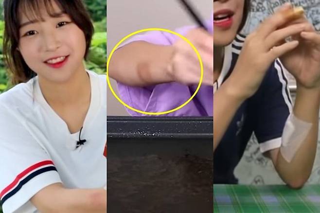 과거 쯔양의 먹방 영상에는 실제 멍이 든 신체 모습이 곳곳에서 포착된다.