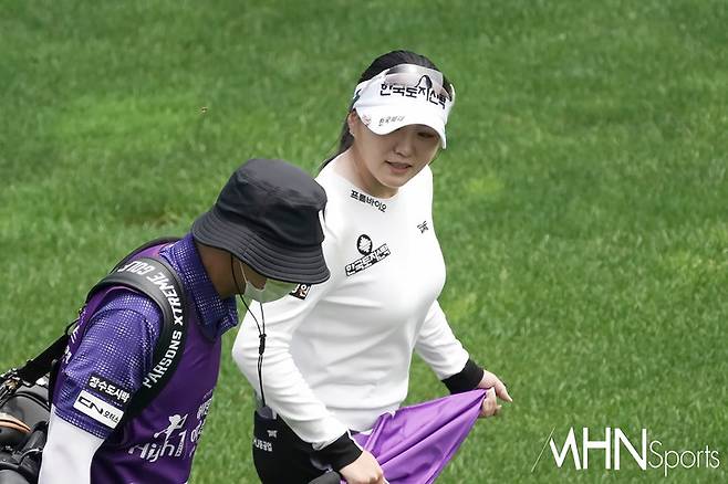 (MHN스포츠 정선, 박태성 기자) 11일 강원도 정선군에 위치한 하이원 컨트리클럽(파72ㅣ6,568)에서 '하이원리조트 여자오픈 2024'(총상금 10억 원, 우승상금 1억8천6만 원) 1라운드가 열린가운데, 유현조(삼천리)가 9번홀 경기를 펼치고 있다.