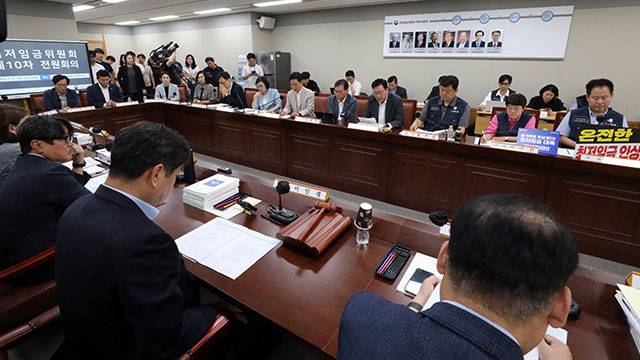 민주노총 소속 근로자위원 4명은 공익위원 측 심의촉진구간에 항의하며 표결에 참여하지 않았습니다.