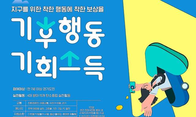 기후행동 기회소득은 일상생활 속에서 온실가스 감축활동인 ‘기후행동’에 대한 사회적 가치에 주목해 평가와 보상을 하는 정책으로 예술인·장애인·체육인·농어민·아동돌봄 기회소득과 더불어 민선 8기 경기도의 대표 정책이다.