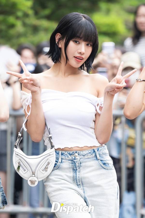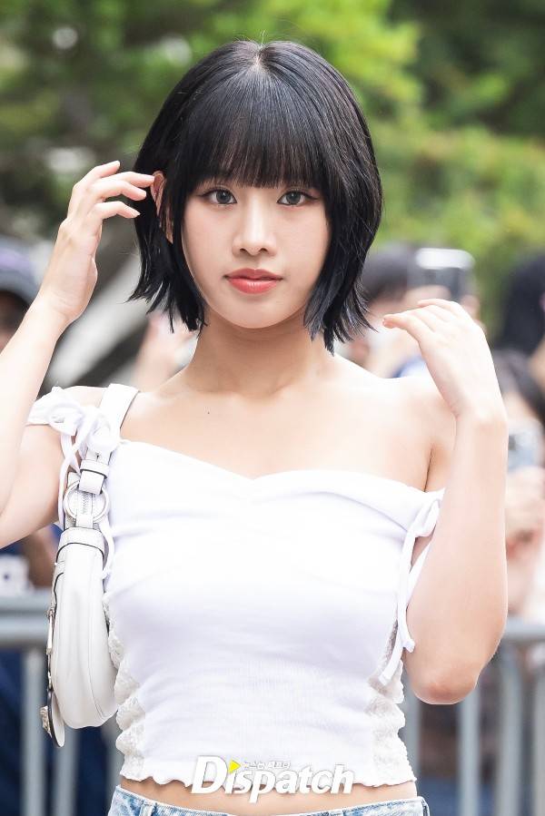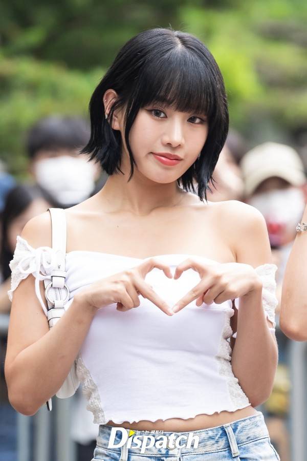 '키스오브라이프' 나띠는 화이트 튜브톱 크롭탑과 데님 팬츠로 섹시한 출근룩을 연출했다.