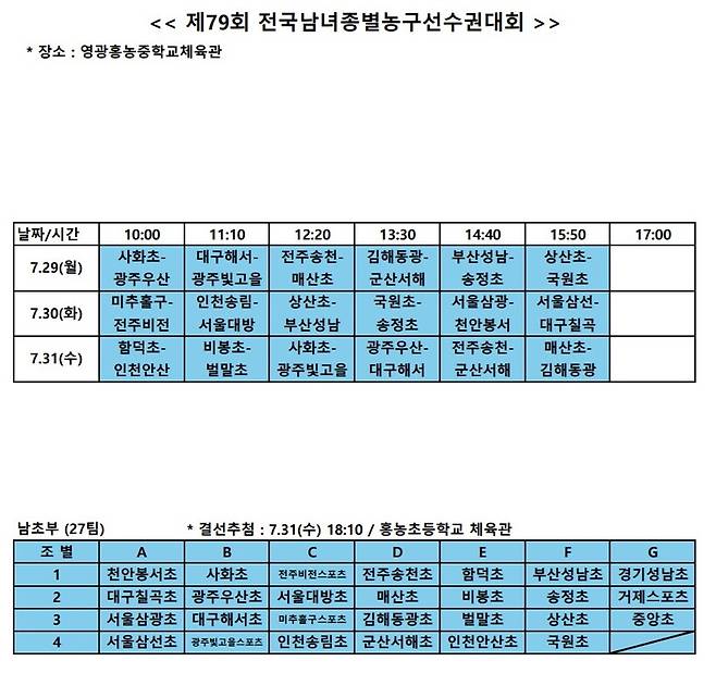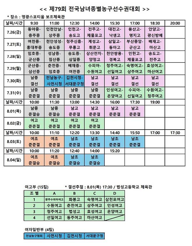 +종별대회 조 추첨 결과+