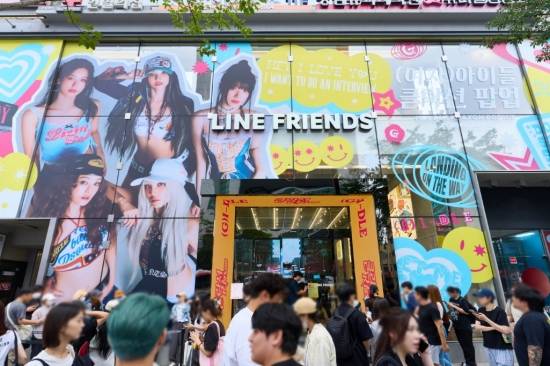'팬들의 심장을 울리는 클락션‘…(여자)아이들, 강남 라인프렌즈 팝업스토어 [덕지순례]
