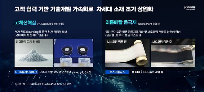 포스코홀딩스 "전고체 전해질·리튬메탈 음극재 테스트 중"