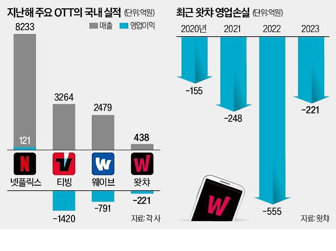 업계에선 왓챠가 국내 OTT 중 처음으로 연간 흑자를 달성할지에 주목하고 있다. 지난해 티빙과 웨이브는 각각 1420억원과 791억원 적자를 냈다.