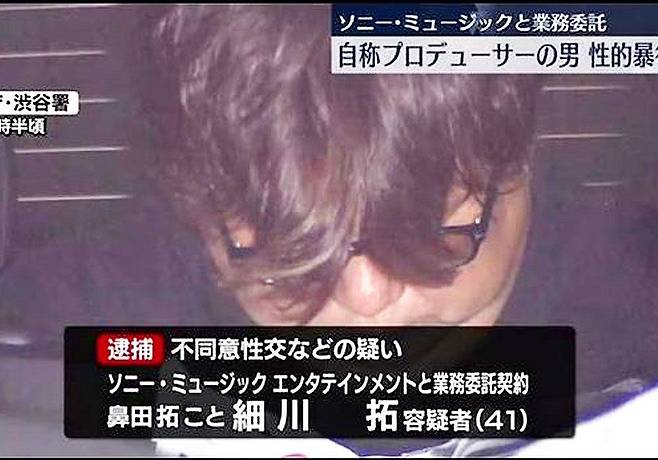 이에 경찰은 41살의 매니저 호소카와 타쿠를 성추행 및 강제 성행위 혐의로 구속했다.