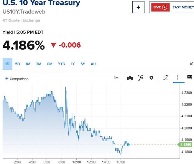 국채금리는 단기물 중심으로 하락세를 이어갔다. 연준 정책에 민감하게 연동하는 2년물 국채금리는 4.9bp(1bp=0.01%포인트) 내린 4.456%를, 글로벌 국채 벤치마크 역할을 하는 10년물 국채금리는 0.6bp 내린 4.186%에 거래를 마쳤다. 30년물 국채금리는 0.5bp 빠진 4.399%다. 2년물과 30년물간 스프레드는 5bp수준으로 좁혀졌다. 단기채 금리가 장기채 금리보다 빠르게 하락하는 ‘불 스티프닝’이 나타나고 있는 것으로, 경기둔화와 인플레이션 완화 신호로 해석된다.