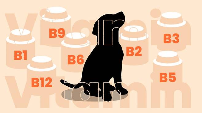 비타민 B군은 총 8가지로, 비타민 B1, 2, 3, 5, 6, 7, 9, 12가 있습니다. 각각은 또 고유의 이름이 있어서 비타민 B1은 티아민 (thiamine), B2는 리보플라빈 (riboflavin), B3는 니아신 (niacin), B5는 판토텐산 (pantothenic acid), B6는 피리독신 (pyridoxine), B7은 비오틴 (biotin), B9은 엽산 (folate), B12는 코발라민 (cobalamine)이라고도 불립니다. 이렇게 이름까지 같이 나열한 이유는, 지금껏 사료 라벨이나 간식 라벨을 보면서 무엇이 비타민 B군인지 자세히 살펴본 적이 많지 않았을 분들이 대부분일 것이기 때문입니다.