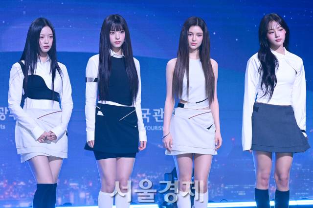 화려한 조명을 받으며 입장한 민지, 다니엘, 해린, 하니는 여유롭게 포즈를 취한 뒤 자리에 앉아 한국 관광에 대해 소개하는 시간을 가졌다.