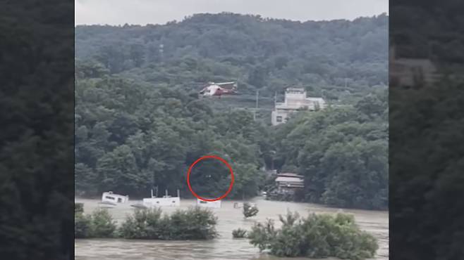 수해 현장의 목격자는 "물이 너무 많이 불어나기 때문에 미처 피할 새가 없어서 구조 대원들이 직접 가지 못하고 헬기로 구조를 했다"고 말했습니다.