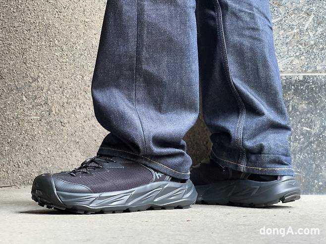 디자인도 호카라2가 가장 마음에 들었다. 샌들이면서 운동화처럼 보이는 디자인이 특징이다. 본격적으로 여름이 시작되면서 호카라2보다 호카라1이 더욱 인기를 끄는 모습이다. 두 제품 모두 샌들로 분류할 수 있지만 호카라1이 조금 더 샌들에 가까운 디자인이다. 뒤꿈치 부분과 어퍼 좌우 양쪽이 샌들 스타일로 뚫려 있다. 호카라2는 뒤꿈치를 제외한 앞부분이 메쉬 소재로 감싸져 모두 막혀있다. 호파라는 하이킹용으로 선보인 아웃도어 샌들이다. 메쉬 소재로 어퍼를 감싸 험지를 달리거나 걸을 때 모래 알갱이나 나뭇가지 등 이물질이 신발 안쪽으로 들어오는 것을 막아주는 역할을 한다. 메쉬 어퍼는 샌들 스타일 호파라1과 운동화 스타일 호파라2를 결정짓는 핵심 요소이기도 하다. 때문에 출근용 샌들 발굴 취지에도 호파라2가 더욱 적합하다.