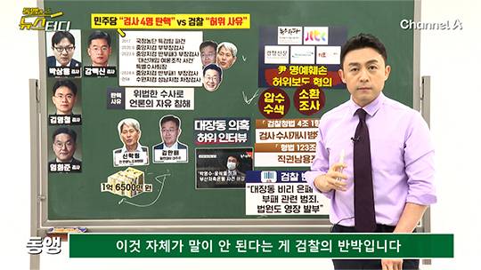 그런데 최근 신학림 전 언론노조 위원장과 김만배 씨가 구속 기소됐습니다. 이 사건을 강백신 검사가 맡았는데, 검찰 수사 결과 위 내용이 사실 김 씨가 신 씨에게 1억 6500만 원의 돈을 주고 허위 인터뷰 및 보도를 시켜 나온 내용이라는 겁니다. 강 검사를 비롯한 검찰은 여기서 수사를 더 나아갑니다.