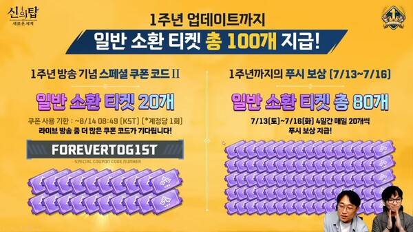 정언산 신의 탑 PD는 "4월 방송 이후 오랜만에 인사드린다. 1주년을 맞이해 많은 것을 준비했다. 유저들의 피드백도 항상 확인 중이다. 그동안 궁금했던 것들도 해소하는 시간을 가져보겠다"며 방송을 진행했다.
