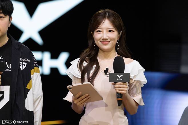 13일 오후 서울 종로구 그랑서울 롤파크 LCK 아레나서 열린 LCK 서머 1라운드 디플러스 기아와 젠지e스포츠의 경기서 젠지가 2대0으로 승리하며 개막 8연승 행진을 이어갔다. 인터뷰 준비 중인 이은빈 아나운서.