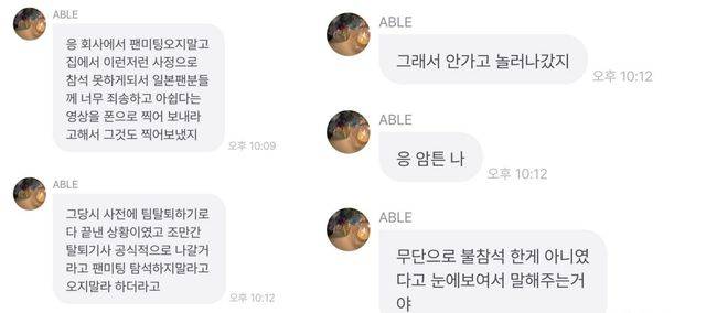 당초 소속사는 장현승의 팬미팅 불참과 관련해 "개인적 사정"이라고 말을 아끼는 모습을 보였다. 장현승 또한 구체적인 불참 사유에 대해 밝히지 않았던 바. 그런 그가 팀 탈퇴 후 8년이 지난 뒤에서야 "회사에서 오지 말라고 했던 것"이라고 해명했다. 장현승은 "당시 팀 탈퇴를 하기로 다 끝낸 상황이었고 조만간 탈퇴 기사가 공식적으로 나갈 거라고 팬미팅에 오지 말라고 하더라. 그래서 안 가고 놀러 나갔다. 무단으로 불참한 게 아니"라며 "회사에서 팬미팅 오지 말고 집에서 '이런저런 사정으로 참석 못하게 되어서 일본 팬 분들에게 죄송하고 아쉽다'는 영상을 찍어서 보내라고 해서 찍어 보냈다"라고 설명했다.