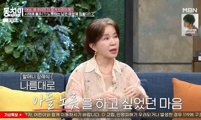 그런데 딱 한 번 남편을 서운하게 한 적이 있다고. 임예진은 "결혼 후 1~2년쯤에 시할머님이 돌아가셨는데, 남편이 본인 연봉보다 더 많은 금액을 장례비용을 달라고 하더라. 아들이니까 장례식을 치르고 그 후에 그 돈을 갚겠단 취지였는데, 전 제가 할 수 있는 만큼 하겠다고 해서 정한 액수를 줬다"라고 밝혔다.