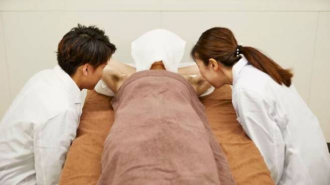 ▲ 일본 연구원들이 직접 겨드랑이 냄새를 맡는 모습