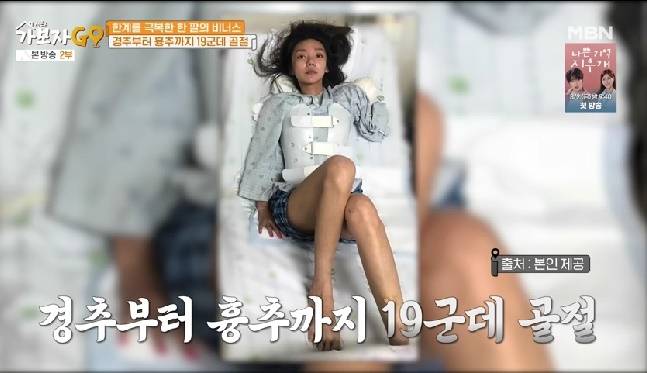 그는 "구르면서 사고가 난 거라서 쇄골뼈가 골절되고 목의 경추부터 흉추까지 19군데가 골절됐다"라며 사고 당시의 기억을 떠올렸다.