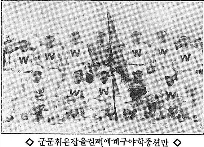 | ▲ 1923년 7월 28일자 동아일보 기사. 당시 박석윤이 감독을 맡은 휘문보고가 고시엔대회 조선예선에서 우승을 거두고 찍은 사진. |