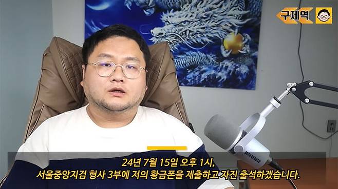 구독자 1천만 명이 넘는 유명 유튜버 쯔양을 협박한 혐의에 대해 검찰이 이른바 사이버렉커 유튜버들을 수사하고 있는 가운데 그중 한 명으로 지목된 유튜버 구제역이 검찰에 자진 출석하겠다는 입장을 밝혔습니다.