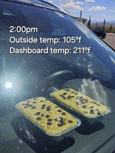 미국 전역이 열흘 가까이 폭염으로 몸살을 앓고 있다. 사회관계망서비스(SNS)에는 역대급 고온 속에 자동차 대시보드에서 빵을 굽는 사진이 올라와 화제였다. 애리조나 주민이 화씨 100도(섭씨 38도)까지 기온이 오른 날 자동차 대시보드에 바나나 빵 반죽을 올려놓자, 서너 시간 후 먹음직스런 빵이 완성된 모습이었다. 외부 기온이 화씨 100도일 때 자동차 대시보드는 화씨 200도(섭씨 93도)까지 상승한다. 화씨 158도(섭씨 70도)에서 계란이 완전히 익는다는 점을 고려하면, 대시보드는 오븐이나 마찬가지다.