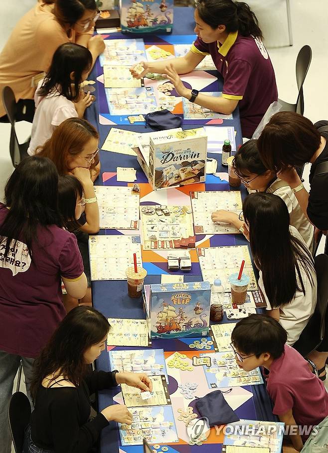 (서울=연합뉴스) 이재희 기자 = 14일 서울 강남구 코엑스에서 열린 '2024 보드게임콘'을 찾은 시민들이 게임을 즐기고 있다. 2024.7.14